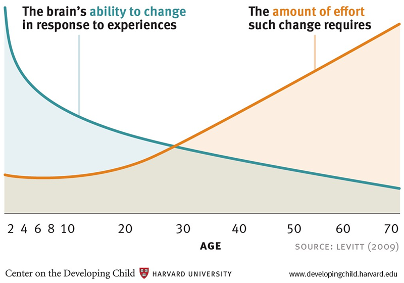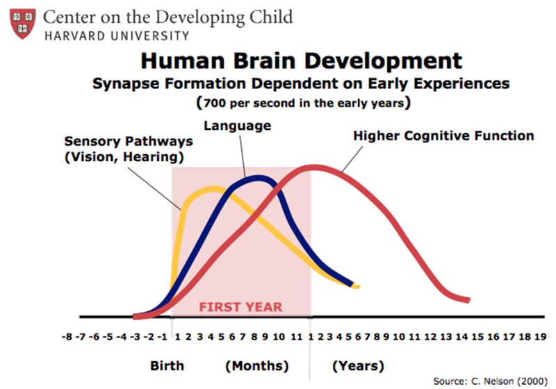 According to the Center on the Developing Child at Harvard University, early experiences affect the development of brain architecture, which provides the foundation for all future learning, behavior and health. Development happens in cognitive-linguistic, socio-emotional and regulatory capacities, which are all inextricably intertwined. Each dimension of the child’s development needs focused attention and appropriate support.